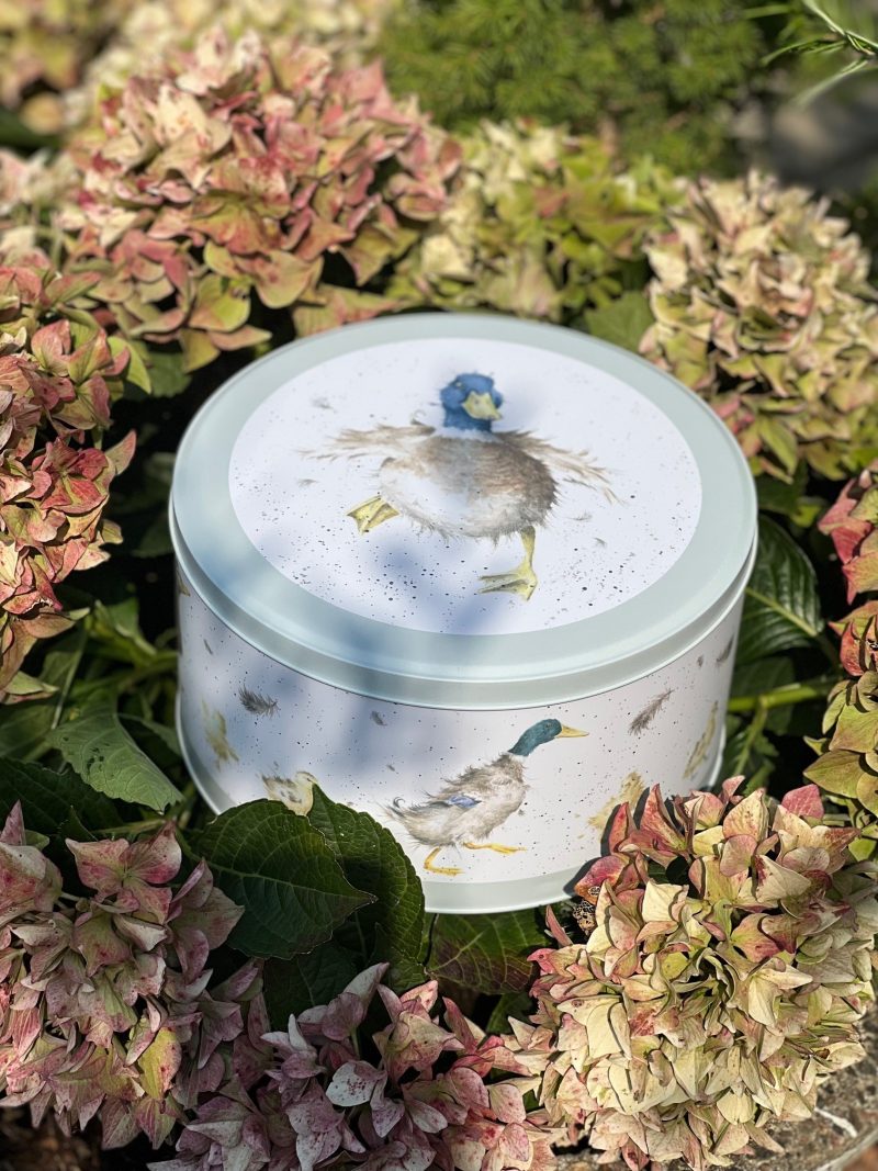 Förvara dina kakor med stil i denna lilla kakburk från Wrendale Designs. Det charmiga ankmotivet ger en lantlig känsla. Håller bakverk färska och vackra!