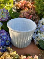Den unika, dämpade gråblå nyansen fångar ljuset på ett magiskt sätt och sprider en känsla av lugn och harmoni. Den är mer än bara en kruka; det är ett konstverk i sig som ger dina favoritväxter den uppmärksamhet de förtjänar. Oavsett om du har en modern, minimalistisk stil eller en mer klassisk inredning, smälter den tidlösa designen in perfekt.